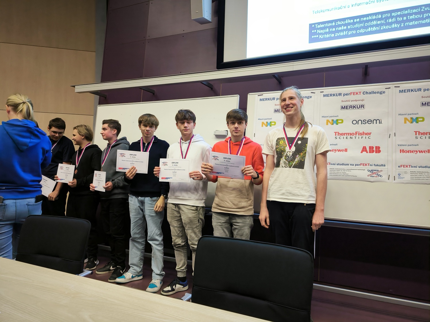 Dne 23. 11. 2023 se v prostorách Fakulty elektrotechniky a komunikačních technologií (FEKT) VUT v Brně uskutečnil jubilejní 10. ročník soutěže Merkur perFEKT Challenge. Soutěž je určena pro čtyřčlenné středoškolské týmy, které baví technika, rády programují, bastlí s jednočipy a staví ze stavebnice Merkur. Letos se soutěže z naší…