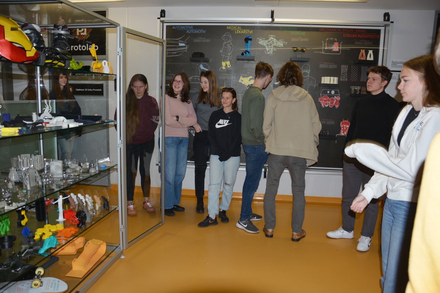 Návštěva laboratoře 3D tisku jim poskytla vhled do inovativních metod výroby a možnost vidět, jak jsou tyto technologie využívány v praxi k vytváření složitých struktur a součástek.
